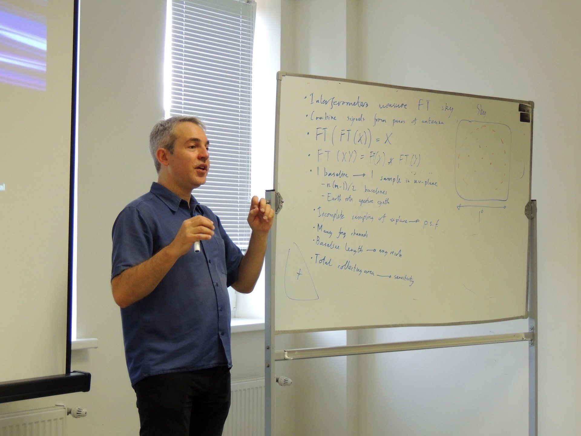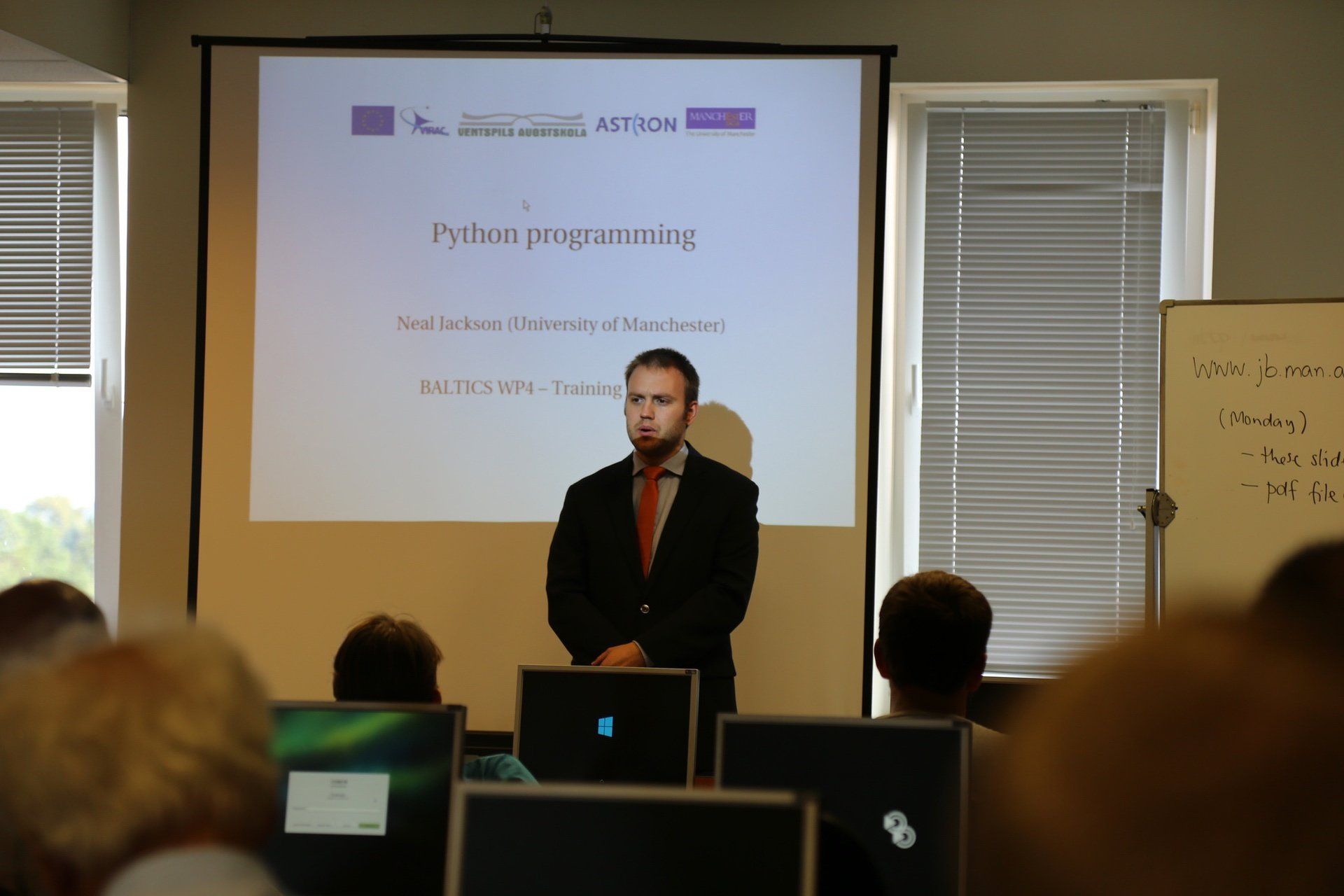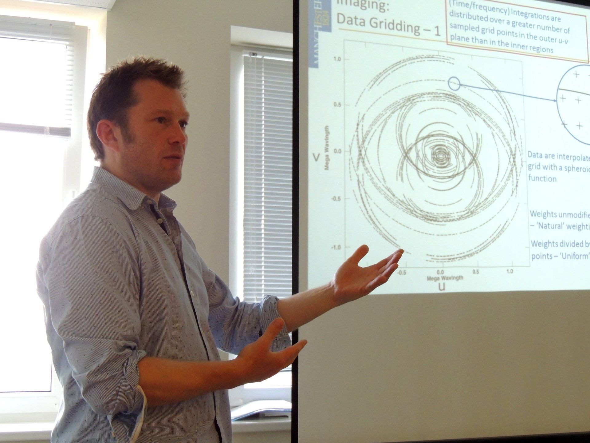 The first aim of the week was to provide an introduction to programming in Python, which is now the de facto programming language of choice in modern radio astronomy. Python is also interoperable with all contemporary radio interferometry software. The second aim of the week was to deliver more advanced training in radio interferometry techniques and more specialist applications, following on from the basic training in interferometry in Week 1. The original aim was modified slightly, because many new participants attended Week 2 who had not been to Week 1. Parallel sessions were therefore run during the Wednesday, to provide a basic introduction to interferometry to those without previous experience, while discussing more advanced techniques of wide-field imaging. The training was delivered by four personnel from UMAN. Dr. Neal Jackson (NJ) coordinated and delivered the course in Python in the first two days, as well as the parallel session on basic interferometry on the third day. Dr. Anna Scaife (AS) delivered the advanced material on wide-field imaging on the third day. Professor Keith Grainge (KG) and Dr. Rob Beswick (RB) jointly delivered the training on long-baseline and VLBI techniques on the fourth and fifth days.